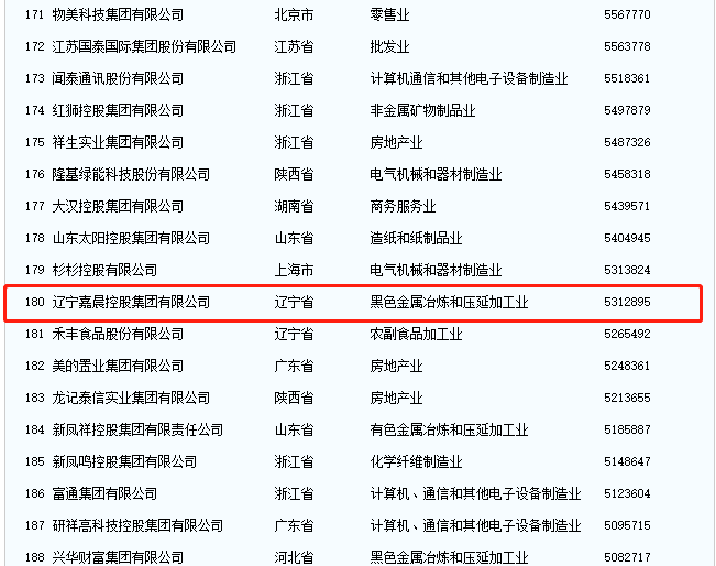 同一天在中國(guó)長(zhǎng)沙,全國(guó)工商聯(lián)發(fā)布了“2021中國(guó)民營(yíng)企業(yè)500強(qiáng)”名單、“2021中國(guó)民營(yíng)制造業(yè)企業(yè)500強(qiáng)”名單,遼寧嘉晨控股集團(tuán)在排行榜中分別排名180位、96位。